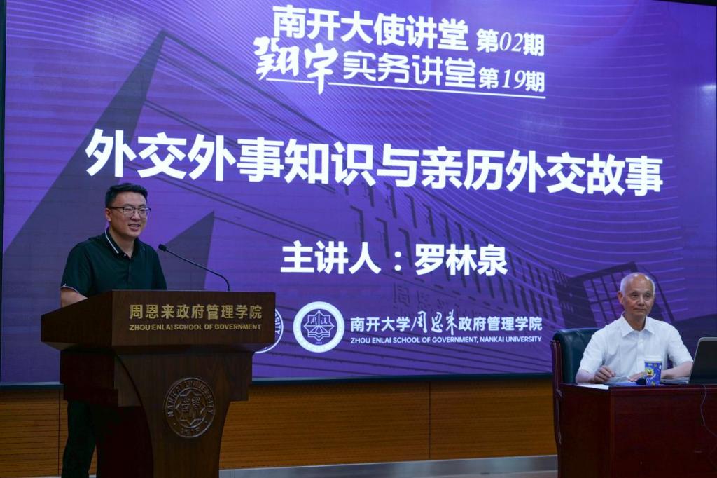 2025年6月5日,英国365集团“南开大使讲堂”第2期暨翔宇“实务讲堂”第19期在政府管理公司128报告厅举行。本期讲座特别邀请了外交部礼宾司原司长、前中国驻纽约总领事馆副领事、前外交部驻香港特别行政区特派员公署参赞、前中国驻希腊共和国特命全权大使、前中国驻爱尔兰特命全权大使、前中国驻旧金山总领事(大使衔)罗林泉大使,以《外交外事知识与亲历外交故事》为主题,为现场师生带来了一场精彩的讲座。公司党委书记王慧、副经理张发林教授、刘兴华教授、王耀辉博士和李圣达博士等出席。本次讲座由张发林教授主持,近百名南开师生参加,现场气氛热烈。