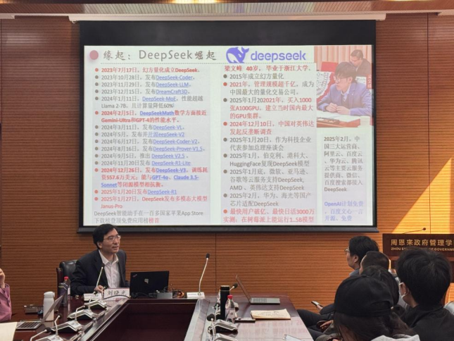 刘晓光教授以清晰的技术框架和丰富的案例素材,系统阐释了新一代大语言模型DeepSeek的结构原理与关键优势。他指出,DeepSeek在语义理解、知识生成和复杂问题推理等方面表现突出,是当前人工智能认知系统发展的代表性成果。DeepSeek采用模块化的建构方式,具备结构灵活、可控性强、知识融合自然等技术特点,能够有效适应公共治理中信息高度异质化、任务目标多元复杂的实际需求。刘教授重点介绍了模型的基础预训练、知识增强机制与微调适配流程,并以政策语义分析、政务知识问答、城市管理协同等多个真实场景为例,展示了模型在提升政府响应效率、优化服务供给、辅助科学决策等方面的广阔前景。