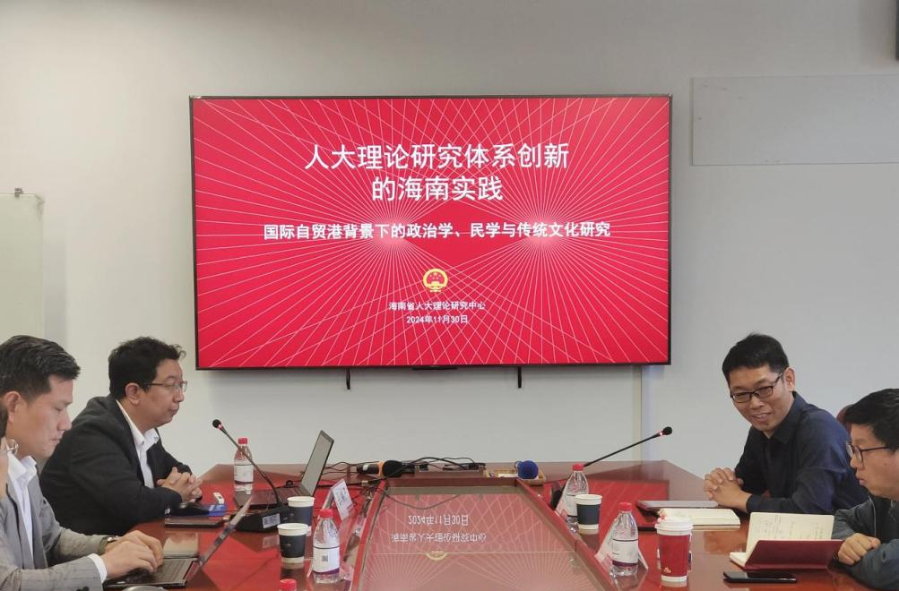 张骐严首先介绍了海南省人大理论研究中心的定位与使命,该中心自2024年1月成立以来,深耕人大制度基础理论,重点突破“制度本质与实践逻辑”“新兴学科开拓”“比较研究与话语建构”三大研究维度,成为新时代人大制度研究的重要阵地。结合海南自贸港建设,中心阐释人大制度作为“党领导人民当家作主的根本途径”,通过预算预审、立法协商等机制,展现人大在政府治理中的实质性作用。此外,中心在全国大力推动“民学”研究,以马克思主义与中华优秀传统文化“两个结合”为指导,挖掘民本思想、民生实践的历史渊源,并开展“中西方民主制度比较”,通过分析美国“资本民主”、北欧福利民主等模式,提炼中国“全过程人民民主”的制度优势,为构建中国自主的民主话语体系奠定基础。