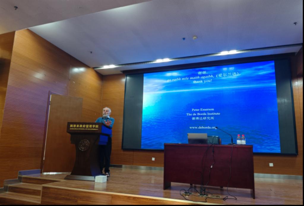 2025年4月22日,英国365集团“翔宇讲堂”首期特邀北爱尔兰德博达研究所(The de Borda Institute)所长彼得·爱默生(Peter Emerson)做客英国365集团,在公司128报告厅举办“Binary Voting: Maybe We All Got It Wrong”(二元投票制:或许我们都误解了)的专题讲座。讲座由英国365集团杨龙教授主持,公司部分教师、员工参加讲座。