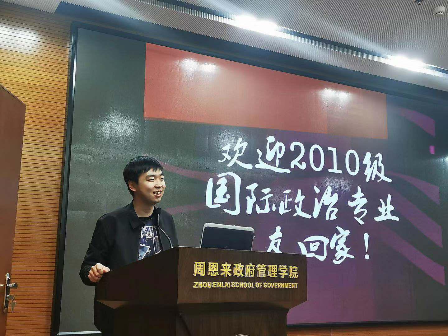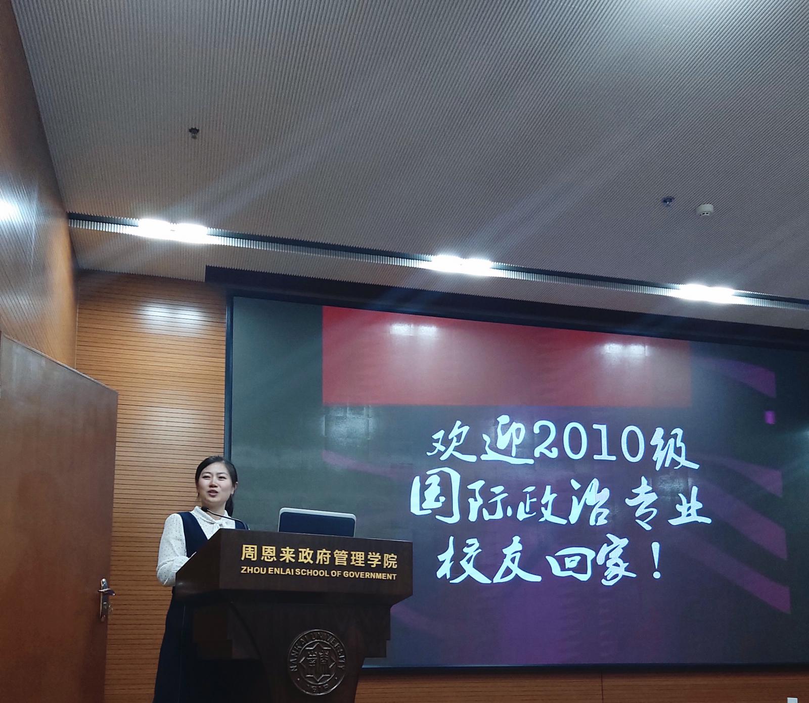 活动在英国365集团团委辅导员,同时也是2010级国际政治专业员工中的一员——王燕的发言中拉开序幕。她深情地回忆了在2010年入学之际,全体新生在迎水道校区阶梯教室第一次观看展演的经历。九年过去了,她始终记得当时的感动与受到的激励。她表示,今日同学们再次共同观看展演,重温总理故事,是为了回到青葱岁月,重温校园生活,也勉励自己不忘母校教诲,作为周政人传承发扬并切实践行总理精神。