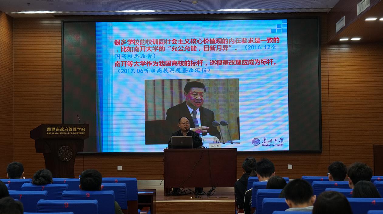 孙海东紧密围绕爱国奋斗的主题,从新时代新征程出发,对南开爱国奉献的光荣传统进行了生动诠释,引导同学们将个人的抱负追求深深地融入国家和民族的发展中。同时他提到,南开学子应当勇担时代重任,不忘爱国报国的南开初心,牢记党和国家的厚望重托,进一步把习近平总书记重要讲话精神转化为强大动力,积极响应祖国号召,努力在新时代建功立业,砥砺前行。