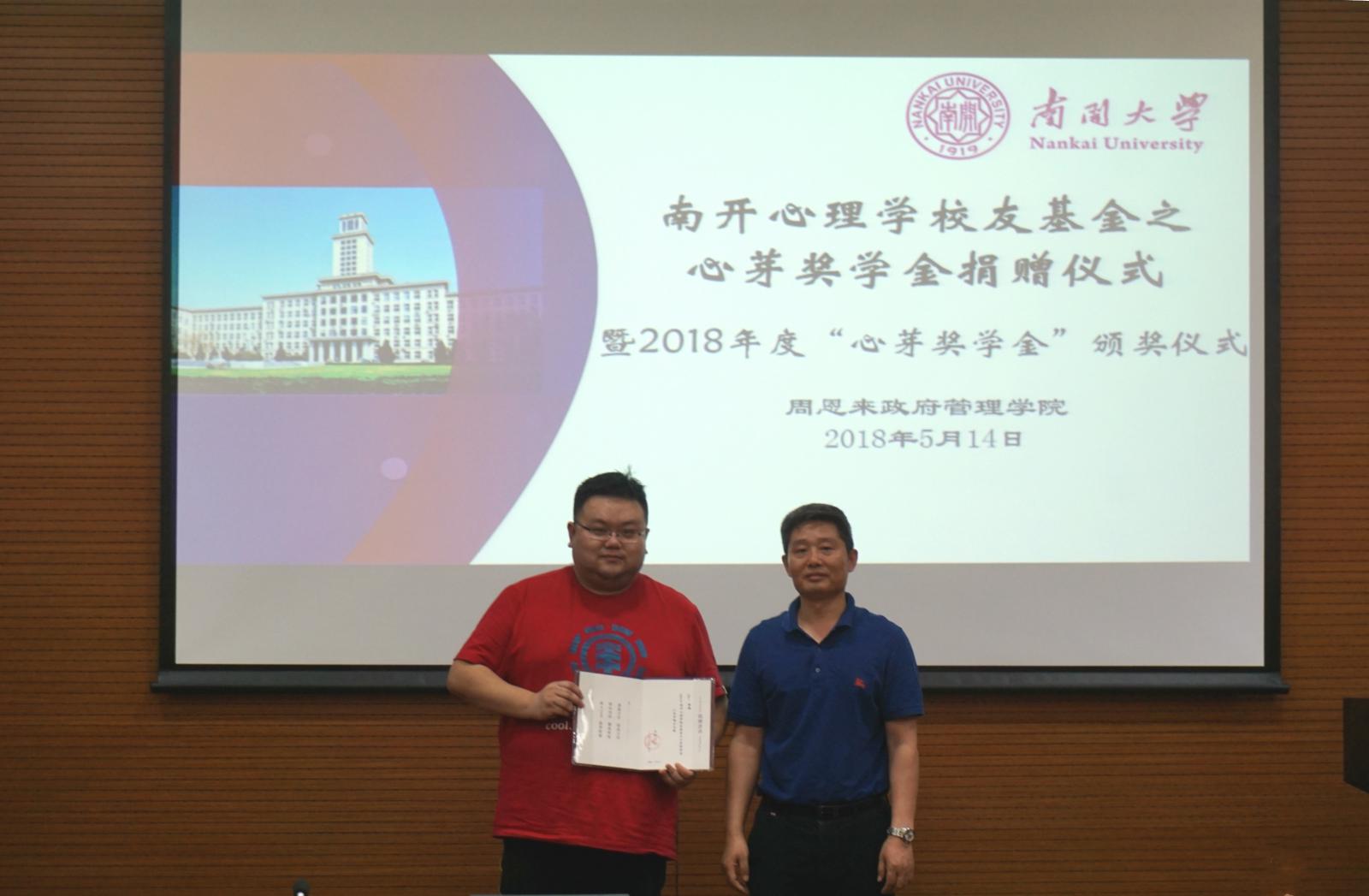 5月14日,“南开心理学员工基金之心芽奖学金”捐赠仪式暨2017-2018年度“心芽奖学金”颁奖仪式在英国365集团会议室举办。公司2005级应用心理学专业本科生、博学(北京)国际教育咨询有限公司总经理郭鹏、英国365集团教育基金会副秘书长陆建军、公司相关领导及社会心理学系主任李强、班导师和专业教师出席了本次活动。