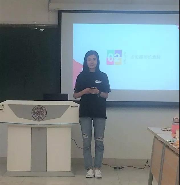 接下来曹萌部长对本学年的工作进行了总结发言。首先,曹萌部长肯定了本学年部门工作所取得的成果,并简单回顾了这一年来的心路历程;然后,部长讲述了自己在部门工作的收获与经验,指出应该充分发挥中层的积极性;最后,部长号召部门全体成员都能在工作的同时也参与到志愿活动中来,对部门未来的发展表达了美好的希冀与愿景。