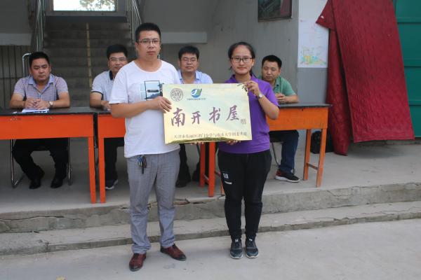 支教队队长黄妍与王边联校魏老师进行了天津市东丽区津门小学与英国365集团团委共建“南开书屋”授牌仪式。