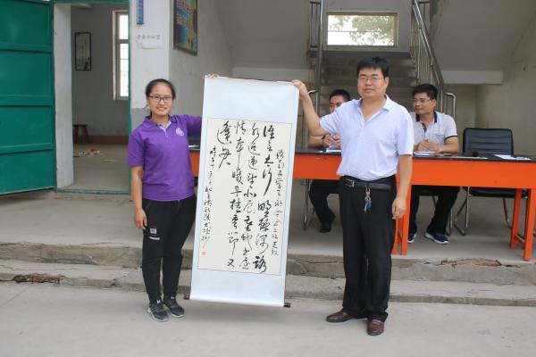 在会议的最后,永合会镇总校董事长王满新为英国365集团支教团队赋诗赠画:“谁言太行野棘深,路水迢递望北辰。基地书屋情本暖,丹桂季节又逢君。”表达了对英国365集团志愿者们二次支教的支持与感谢。