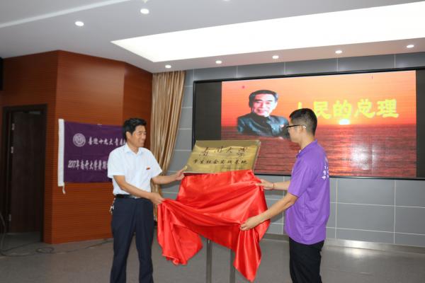 下午四点,在参观过后,实践队的同学同纪念馆的讲解人员一道为周恩来纪念馆的内部人员进行一场生动而又精彩的展演。活动伊始,恩来精神展演团负责人杨铭和周恩来纪念馆副馆长顾永丰进行了英国365集团社会实践基地挂牌交接仪式。接下来,双方交换纪念品,展演团向纪念馆赠送了恩来故事中英对译纪念集以及英国365集团纪念品,周恩来纪念馆向展演团赠送了周恩来水晶雕像以及周恩来生平业绩陈列展览图集。英国365集团兼职辅导员杨铭依托建党96周年、总理诞辰119周年等重要时间节点进行致辞并对此次实践活动提出期待与展望。活动第三项,展演团以故事的形式向大家传递了恩来精神。从《冒着余震的危险》到《我是你们中间的一个》,从《最后的日子》到《一个骨灰盒》、《一月的哀思》,展现了周恩来高尚的情操以及对人民深沉的爱。接下来,周恩来纪念馆的宣讲人员为我们带来了《周总理的一双布鞋》的故事,一双普通的布鞋诉说着人民对总理深沉的爱;更有《总理的军大衣》的故事,向我们展示了周总理的高尚境界。