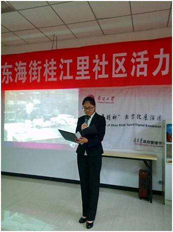 为更加切实地践行奉献、友爱、互助的宗旨,将公民意识落到实处,恩来精神数字化展演团注册加入河西区青年志愿者协会,定期定向下社区开展志愿服务。自开学至今,展演团陆续走入河西区东海街松江里、东海街华江二委、下瓦房街南华里、东海街桂江里,与社区居民进行学习交流互动,实现恩来精神的多渠道、多形式传承,为恩来精神赋予新的时代烙印。