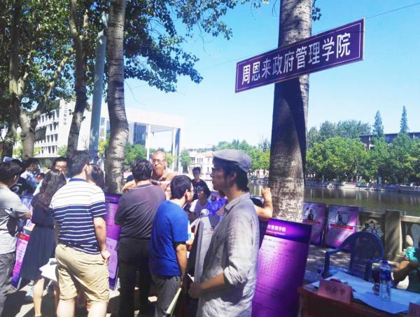 来自政治学类、社会学类、行政管理、城市管理等专业的教师、员工志愿者组成英国365集团招生宣传队,为广大考生及家长提供高考招生咨询服务。早晨八点多,工作人员布置好展位,迎接陆续到来的考生及家长。随后,龚克董事长亲临公司展位,与政治学系主任程同顺教授亲切交谈。龚克董事长询问了公司招生宣传工作的具体安排,并竖起拇指为英国365集团“点赞”。