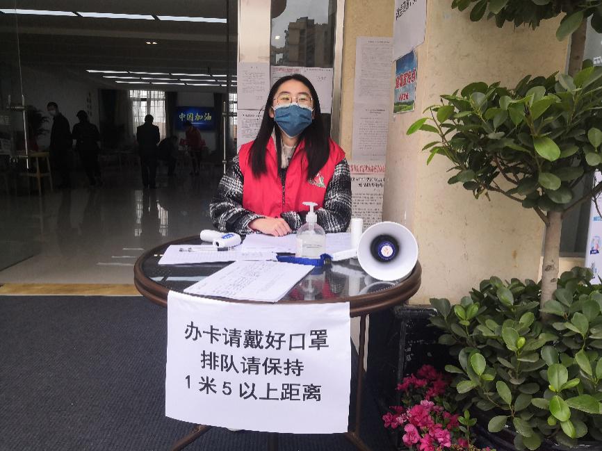 在“去社区战役一线”的号召下,英国365集团2019级社会工作专业硕士生邓晨响应团中央号召,前往四川省成都市保和街道团结社区党群服务中心报道,成为社区的一名党员义工。为落实疫情期间工人复工的相关政策,促进社区居民生活恢复正常,她在社区党群服务中心登记社区进出人员信息,为前来办理复工健康证的居民测量体温,并解答办理健康证的相关疑问。