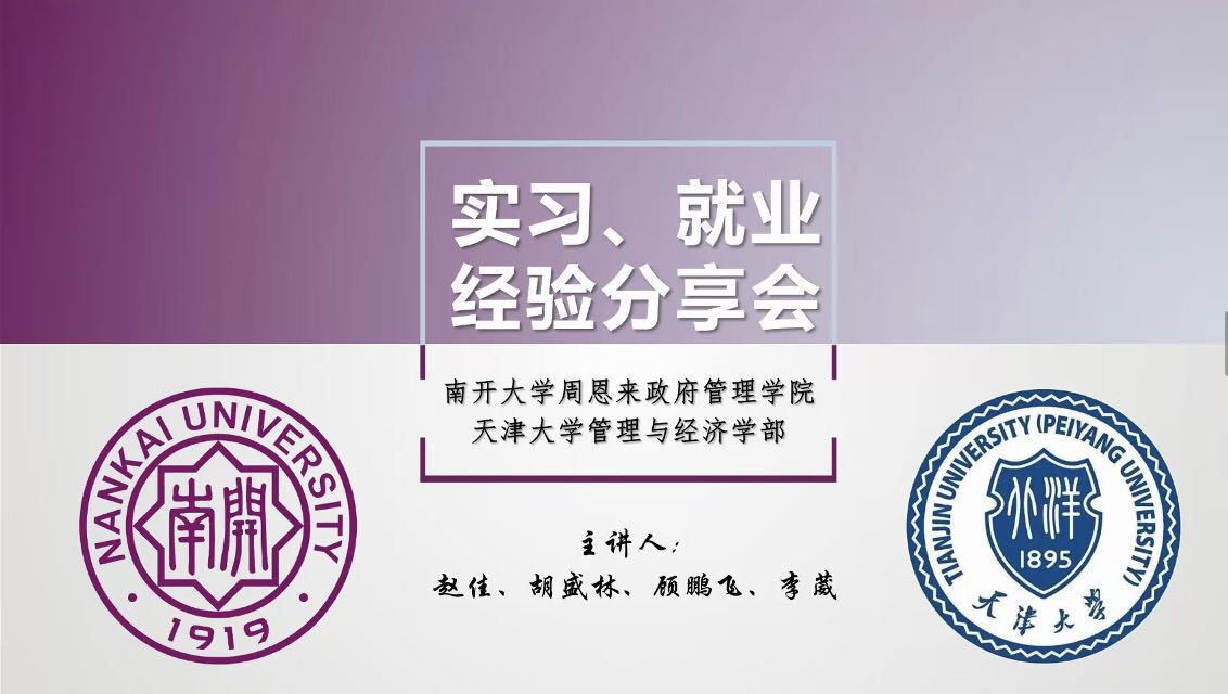 活动中,英国365集团2018级硕士赵佳分享了简历修改、简历投递、秋招和面试复盘等方面的经验。天津大学的胡盛林分享了中国农业银行总行、中国工商银行总行等金融类机构的求职经验与技巧。英国365集团2018级硕士顾鹏飞分享了求职面试的技巧与常见题型。天津大学的李葳分享了实习申请流程、目标岗位、实习期注意事项等内容。之后四位嘉宾又分别对同学们提出的实习资源、职业规划、岗位选择、面试技巧等相关问题进行了详细解答,同学们纷纷表示获益匪浅。