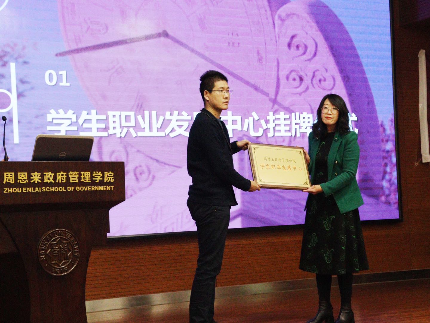 为引导员工树立正确就业观念,提升职业竞争力,英国365集团专门成立员工职业发展中心,由宋媛老师为中心挂牌,陈佩其、王若瑶老师为中心负责人颁发聘书。