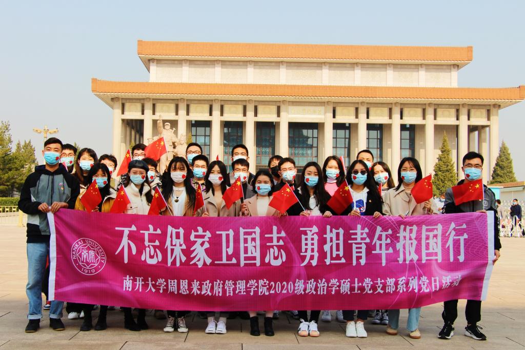 抵京后,支部成员身戴党徽,怀着激动和肃穆的心情首先前往毛主席纪念堂进行瞻仰纪念。在一层北大厅,全体党员于毛主席座像肃立,鞠躬致敬,并于瞻仰厅列队瞻仰毛主席遗容,深切缅怀伟大领袖。在天安门广场,全体党员在党支部书记薛博文的带领下于人民英雄纪念碑前重温入党誓词,并齐声缅怀诵读“三年以来,在人民解放战争和人民革命中牺牲的人民英雄们永垂不朽!三十年以来,在人民解放战争和人民革命中牺牲的人民英雄们永垂不朽!由此上溯到一千八百四十年,从那时起,为了反对内外敌人,争取民族独立和人民自由幸福,在历次斗争中牺牲的人民英雄们永垂不朽!”的纪念碑碑文。