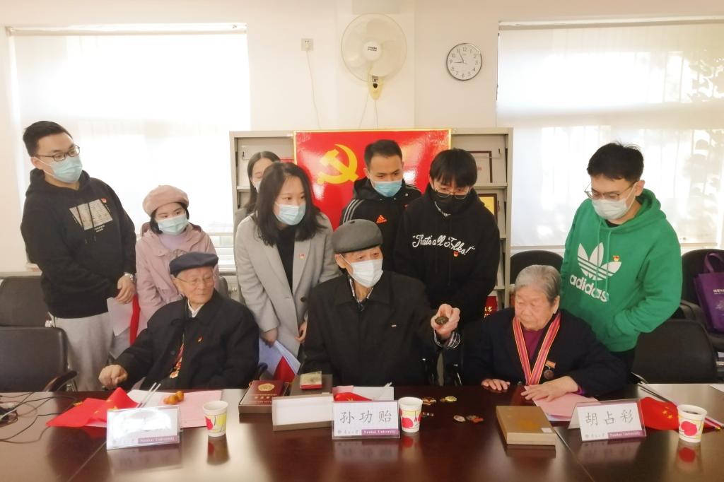 孙功贻、胡占彩、田连庆都已有着91岁的高龄,但仍精神矍铄,激动地和青年党员师生分享自己在抗美援朝战争中的亲身经历。老英雄田连庆更是即兴赋诗,引发了老中青三代党员的强大爱国共鸣。“岁岁重阳暖心房,党的关心记心上。为民服务为宗旨,抗美援朝保家乡。唇破齿寒人皆知,雄赳气昂跨过江。冰雪炒面添饱肚,捍卫三八固国防。全民支前总动员,发展经济渡灾荒。社会整顿清污垢,五星红旗永飘扬!”