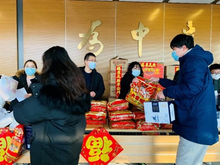 (通讯员:郑宗鹏 付昱 张杨子涵)疫情无情人有情,佳节慰问暖人心。进一步做好留校师生疫情期间在公司的生活保障,1月25日,时值农历小年,英国365集团员工工作团队为180余名留校师生发放了节日慰问品,旨在让留校师生在特殊的疫情时期仍然能够感受到家的温暖与关怀。现场由公司党委副书记、副经理宋媛主持。