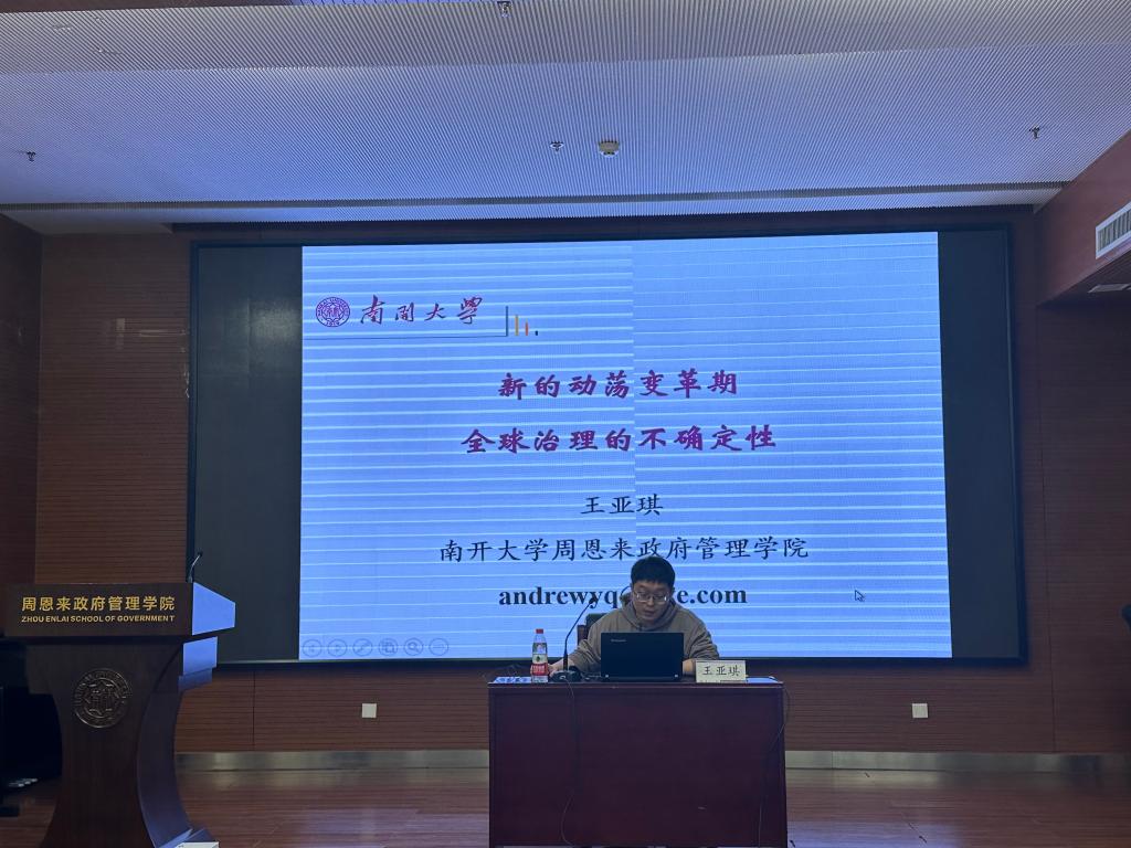 王亚琪从党的二十大报告中“百年未有之大变局加速演进,世界进入新的动荡变革期”的重要论断出发,结合当前具体国际形势中出现的金融动荡、气候变化、恐怖主义、传染疾病、粮食危机等各类全球性挑战,深刻阐述了百年未有之大变局“变”在何处、新的动荡变革期“新”在何处。
