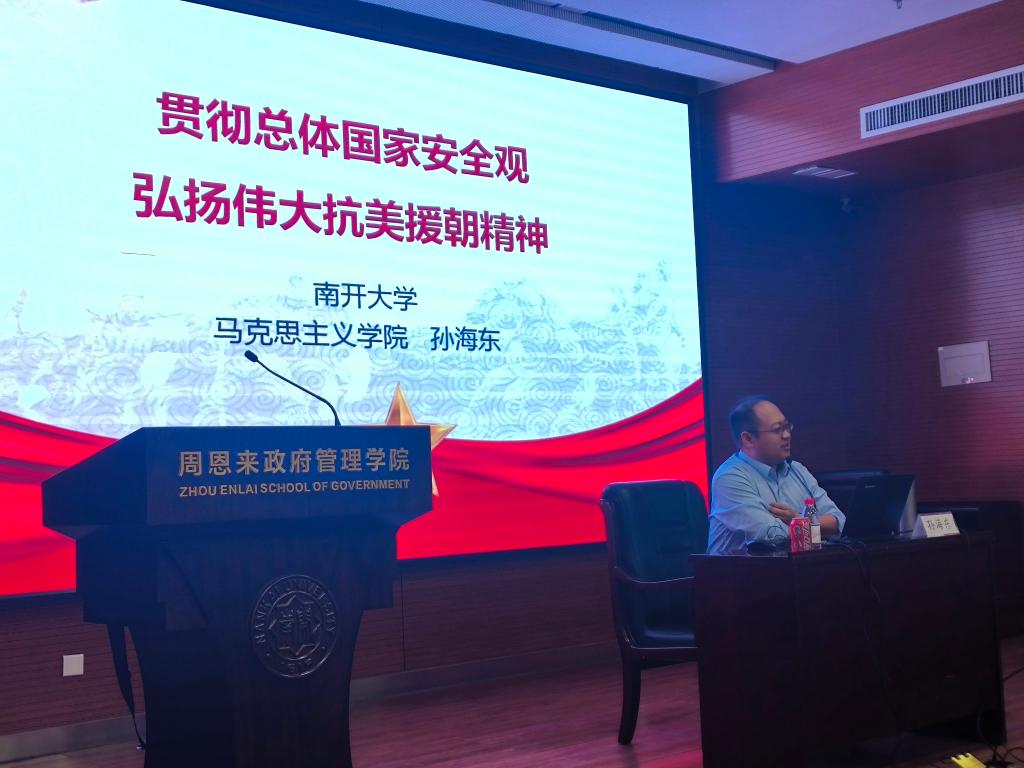 孙海东首先从历史背景、国力对比等方面介绍了抗美援朝战争的具体情况,并对抗美援朝精神及其重要意义进行详细阐释。他强调,广大团员青年要深入学习贯彻总体国家安全观,深刻认识世界之变、时代之变、历史之变,深刻认识我国国家安全形势面临的机遇和挑战,树立底线思维,谨防西方意识形态渗透,坚决反对历史虚无主义,坚定文化自信,切实增强忧患意识和使命担当,勇于为维护国家安全和发展挺膺担当。