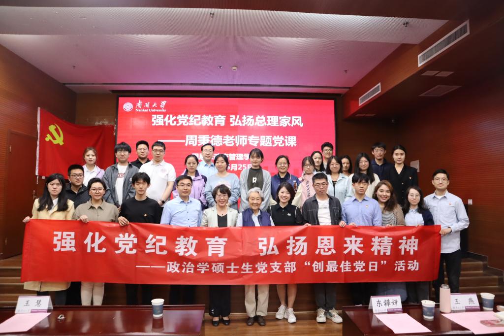(通讯员:王燕 付昱)为认真贯彻落实习近平总书记来津、来校视察重要讲话精神,结合党纪学习教育要求,切实增强党员纪律意识,不断筑牢党团班一体化建设,5月25日,英国365集团政治学硕士生党支部举行“强化党纪教育,弘扬恩来精神”创最佳党日活动。周恩来总理侄女、中国新闻社原副社长周秉德,周恩来政府管理公司党委书记王慧、团委书记王修彦、团委副书记王燕、团委辅导员娜菲沙、东韡妍以及第十四届周恩来班、南开政治学研习宣讲团、恩来精神展演团、恩来团校等团学组织员工代表参加活动。