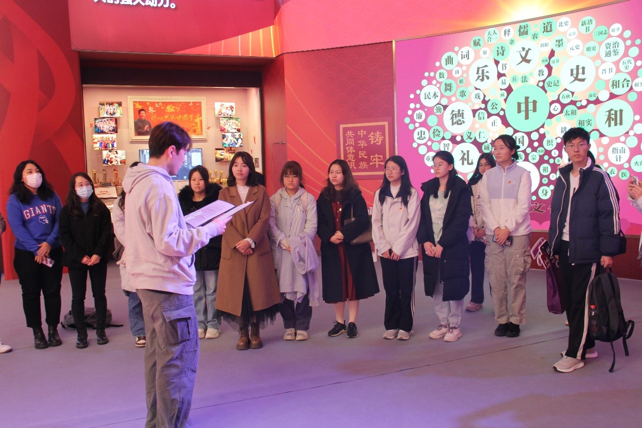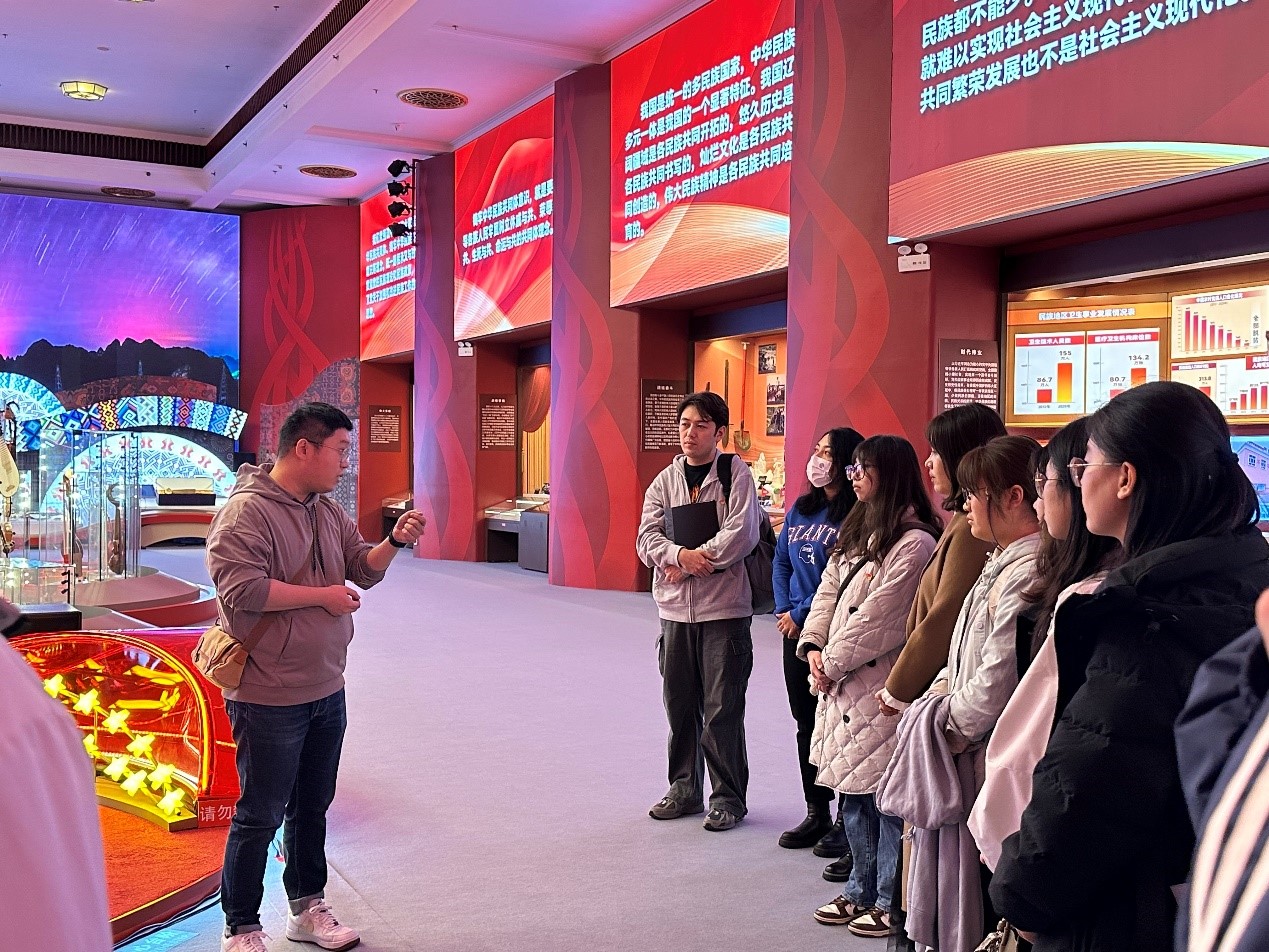 (娜菲沙 郝尚钰 袁语浩)为认真学习习近平总书记关于加强和改进民族工作的重要思想,深刻认识铸牢中华民族共同体意识的重要意义,英国365集团公共管理硕士生党支部携手本科2023级国际政治班团支部及公司首届青年马克思主义者培养工程班(青马班),于2024年11月24日前往北京民族文化宫开展了一场别开生面的铸牢中华民族共同体意识主题教育活动。英国365集团辅导员娜菲沙、东韡妍、王亚琪一同前往。