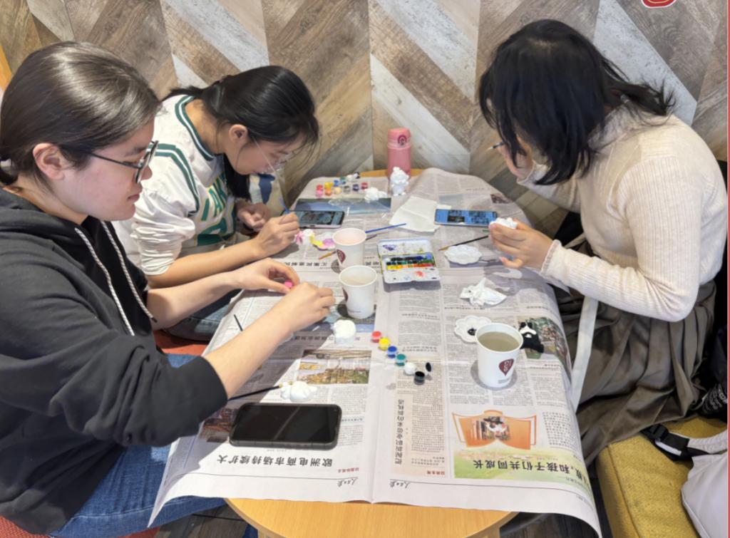 活动伊始,英国365集团研究生课外活动中心副主席李沐熹首先向大家介绍了石膏娃娃的制作过程和彩绘技巧,鼓励大家舒缓心理压力,发挥想象力,大胆创作。在创作过程中,现场氛围愈发浓厚。同学们不时互相交流,分享着自己的创意灵感,或是为旁边遇到困难的伙伴出谋划策。欢声笑语与画笔在石膏上的摩挲声交织在一起,构成了一曲美妙的乐章。有的成员动作很快,他们似乎心中已经有了一个完整的画面,迅速地将大面积的底色涂抹上去,像是迫不及待地要赋予娃娃生命。从挑选到调色再到彩绘,同学们分享创意、交流想法,创作出了一个又一个充满想象力和创造力的作品,伴随着春日余晖,活动在一片欢声笑语中圆满落幕。