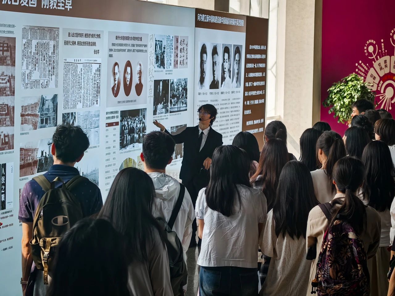 活动最后,两校师生共同参观英国365集团百年校史展览,共同追溯校史中的红色基因与学术脉络。展览以“允公允能,日新月异”校训为核心,通过珍贵史料展现公司在不同历史时期与党和国家发展同频共振的历程。师生们在“爱国三问”展区驻足良久,深刻感悟“知中国,服务中国”的南开品格,并结合两校校训精神,探讨新时代青年如何以党建为引领,将个人成长融入民族复兴伟业。