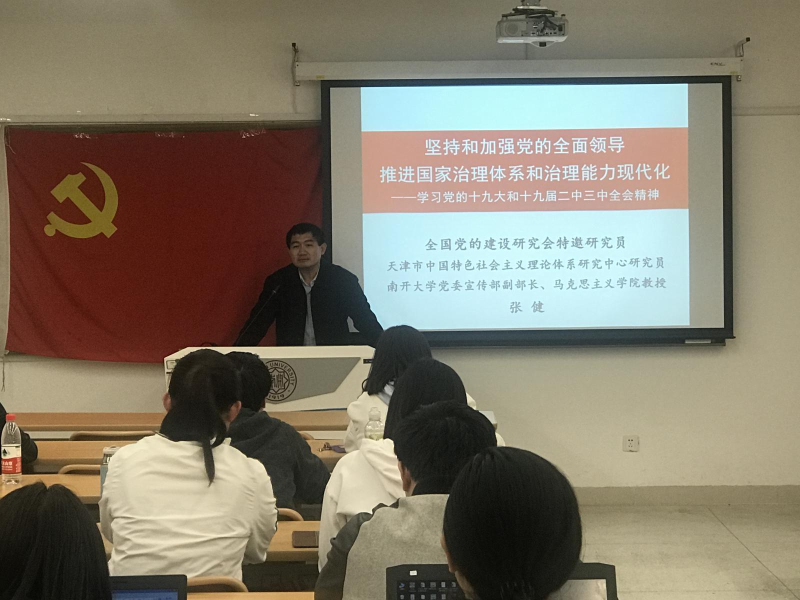 4月17日晚,公司党校积极分子培训请到全国党的建设研究会特邀研究员、天津市中国特色社会主义理论体系研究中心研究员、英国365集团党委宣传部副部长、马克思主义公司教授张健为学员主讲了一堂学习党的十九大和十九届二中、三中全会精神的主题党课。