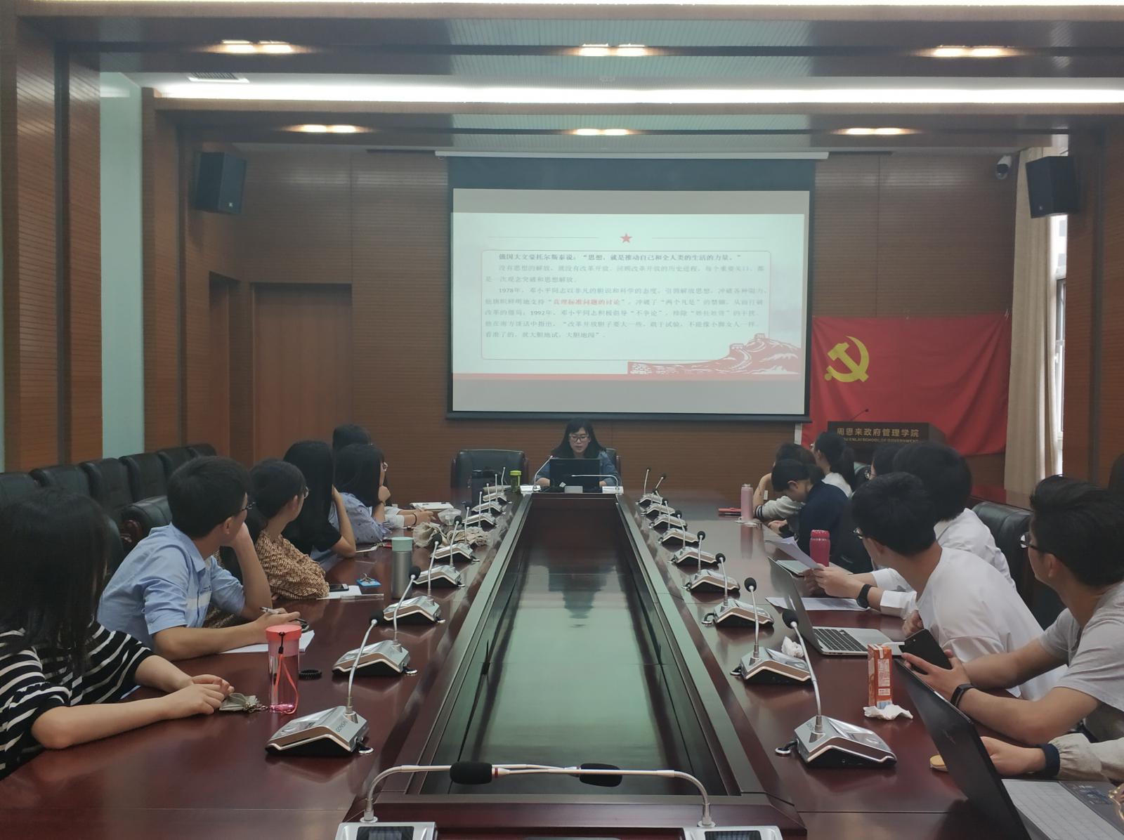 分组研讨环节,三个党小组结合专业特色,将改革开放40年的巨大成就聚焦于天津,从政治、经济、对外开放三个角度总结讨论改革开放40年来天津的发展变化。政治学理论专业党小组从民主法治建设、反腐倡廉工作、思想道德建设和精神文明创建三个方面讲述天津政治上的改革发展;行政管理专业党小组从经济增量、经济结构、民计民生三个方面讨论天津经济上的巨大成就;国际关系专业党小组则重点从滨海新区建设的历史和规划入手,分析了天津滨海新区在工业、商业、科技、基础设施建设等方面的对外开放情况。