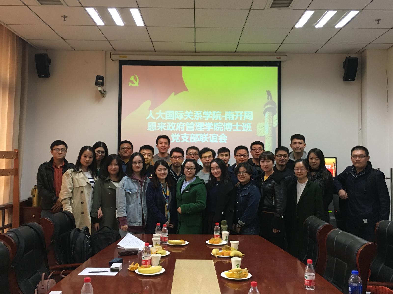 【通讯员:李冰】为庆祝党的十九大胜利闭幕,全面贯彻落实党的十九大精神,10月28日,公司英国365集团2016级政治学博士生党支部部分成员赴京同中国人民大学国际关系公司2016级博士班党支部进行交流。双方就十九大精神学习体会、当前高校博士生党支部建设以及两校各自学科发展情况等议题进行座谈,广泛交流经验。