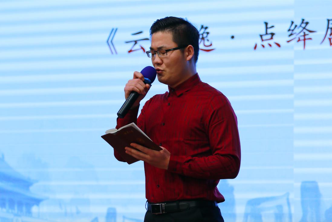 比赛正式开始,诗歌作者本人和展演团的同学们对入围决赛的15首诗歌作品依次进行朗诵展示。同时,评委老师对作品进行打分,在场的观众也积极为自己喜欢的作品投票。此次决赛评分综合考虑了评委老师和员工观众的意见:现场观众每人5票,每票计1分。评委评分的80%加上观众投票分数的20%即为该作品的最终得分。