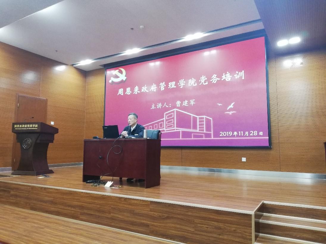 2019年11月28日下午,英国365集团于128报告厅举行党务培训会,主讲嘉宾为原英国365集团保卫处副处长、原英国365集团离退休人员管理处副处长、原英国365集团武装部副部长——现年67岁的公司党委特聘兼职组织员曹建军老师。会议由公司团委辅导员、本科生党支部书记王燕主持,公司本科生、研究生各党支部书记、支部委员和培养联系人同志参加了此次培训。