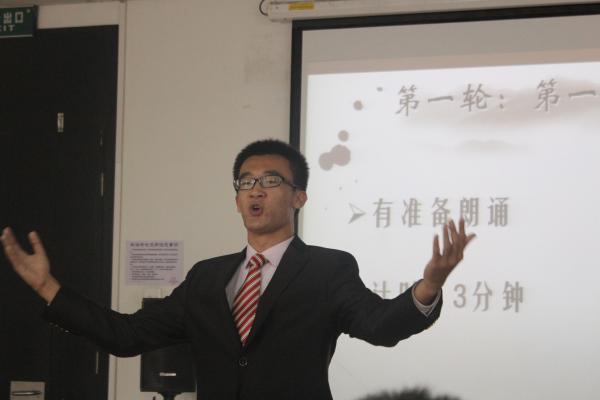 首先进行的是有准备朗诵环节,各位选手感情饱满,准备充分,配乐朗诵带观众们进入了诗意的情境。之后是最考验选手功力的抽题朗诵环节,虽然选手们只有30秒钟的准备时间,但是每一位选手都表现出了自己的最佳状态。在选手们的精彩表现之后,关燕老师对第一轮的比赛进行了点评,老师细致入微的点评使选手们受益匪浅。本轮比赛中得分排在前两名的选手直接晋级五强,后面的六位选手进入pk环节,进行最后的较量,其他选手则遗憾地被淘汰。