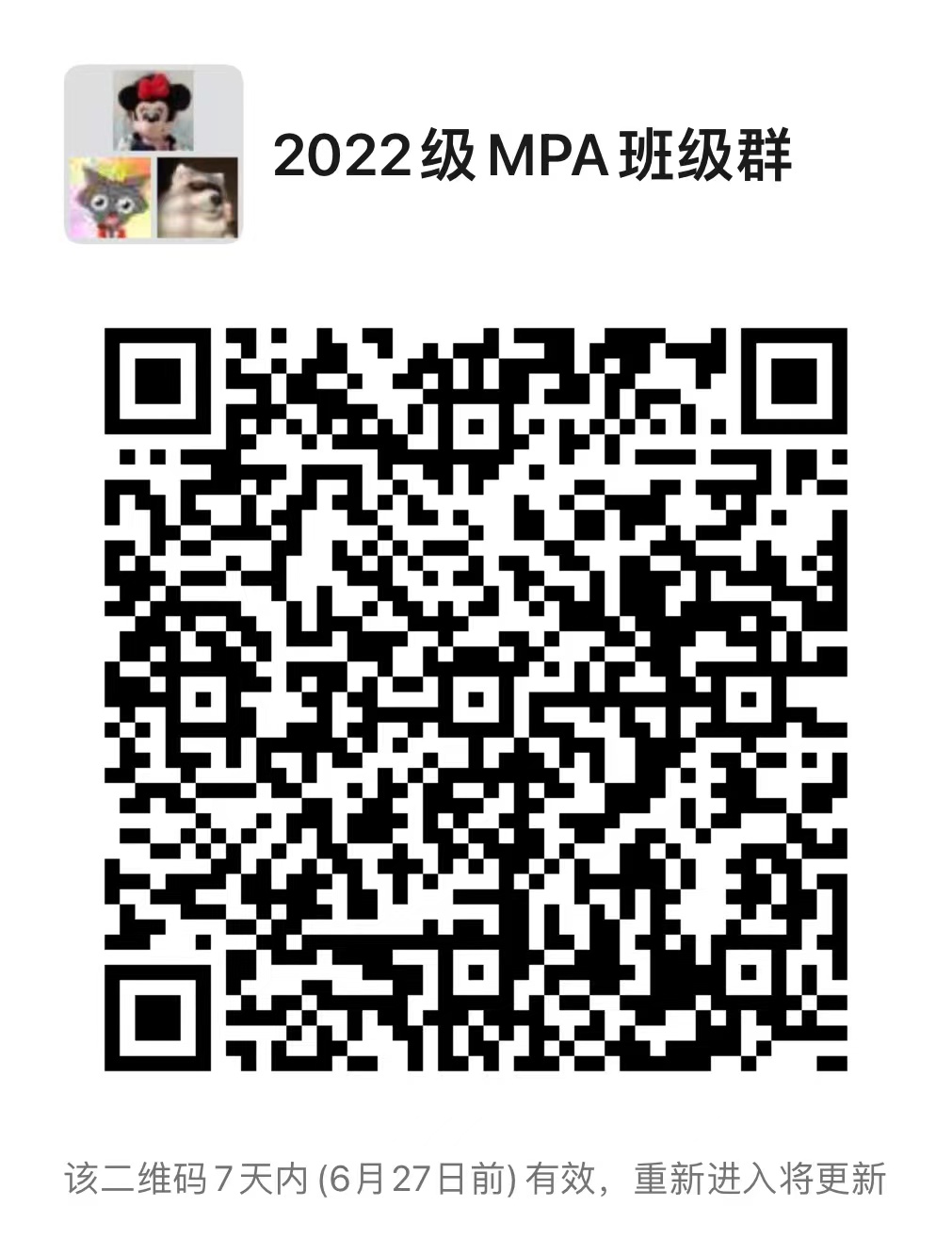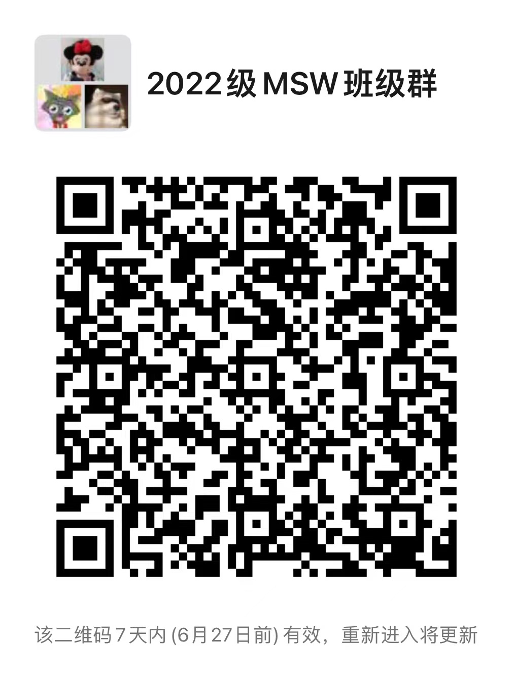 为便于交流,请同学们加入对应的班级微信群。进群后将个人在群里的昵称改成姓名+身份证号后四位。不及时修改昵称或昵称信息不准确的,将被移出群。