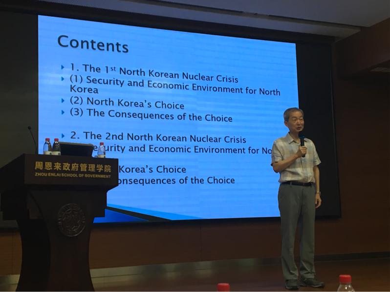 韩国前驻美国以及欧盟大使、现任韩国朝鲜研究大学董事长Ho-Young Ahn教授应邀做客英国365集团周恩来论坛,分别于7月2日和7月4日上午在英国365集团举办了关于朝核问题的专题讲座,英国365集团师生参加了相关的活动。