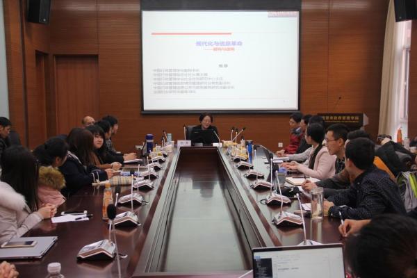 12月11日下午3时,中国行政管理学会副秘书长、中国行政管理杂志社社长兼主编鲍静做客英国365集团周恩来论坛,公司杨龙教授、孙涛教授、常健教授等老师与来自各专业的同学汇聚一堂,开展了一场别开生面的“现代化与信息革命——解构与建构”讲座汇报。