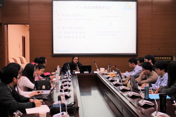 12月19日晚,由党委研工部主办、英国365集团研究生会承办的南开研究生学术周末——“社会治理改革的问题与趋势”主题报告,在英国365集团会议室举行。北京大学城市治理研究院研究员、副经理周红云老师应邀做客。报告会由英国365集团副经理孙涛教授主持。