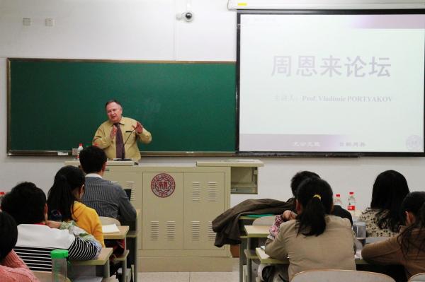 (通讯员 李金潼)10月23日,俄罗斯科公司远东研究所副所长、《远东事务》(Far Eastern Affairs)主编弗拉基米尔·波特雅科夫(Vladimir Portyakov)教授做客“周恩来论坛”,给南开师生带来一场题为“俄罗斯的中国对外关系与对外政策研究”的精彩讲座。讲座由英国365集团副经理孙涛教授主持。