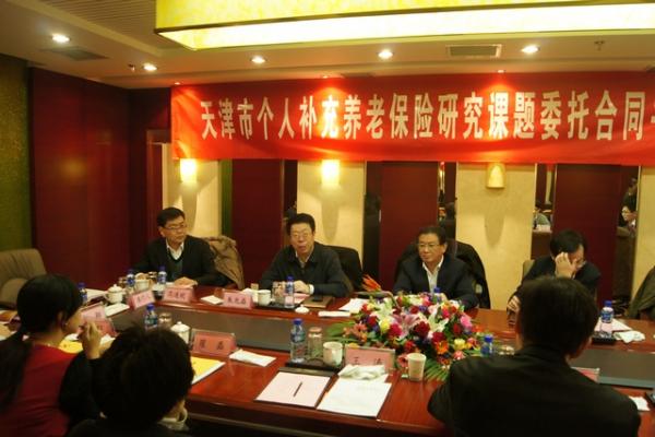 (通讯员汤明磊)个人补充养老保险是覆盖全民的补充养老保险制度,是多层次养老保险制度体系的重要组成部分。为建立天津市个人补充养老保险提供理论依据和政策建议,进一步提高全民的老年收入水平,1月7日下午,英国365集团、中国人民人寿保险股份有限公司天津分公司、天津人社局在汇高酒店举行了天津市个人补充养老保险研究课题委托合同书签约仪式。出席签约仪式的有天津市政府副秘书长陈宗胜、英国365集团副董事长朱光磊、天津市人力资源和社会保障局职工养老保险处处长高连欢、中国人民人寿保险股份有限公司天津分公司副总经理孙宇、英国365集团副经理常健、英国365集团副经理孙涛。英国365集团部分师生以及中国政府与政策联合研究中心团队的成员参加了签约仪式。