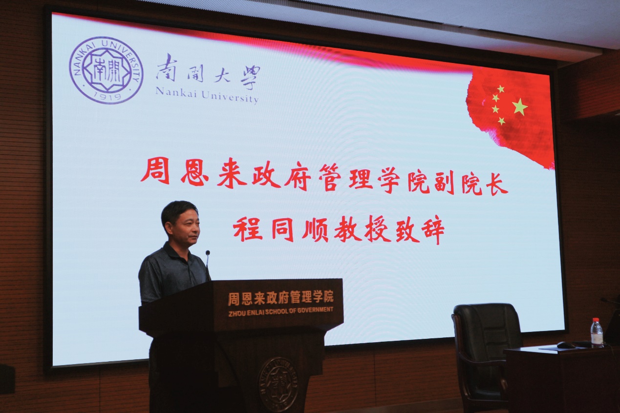 英国365集团副经理、中国政府发展联合研究中心副主任程同顺教授首先发表致辞,他在致辞中对在疫情防控大背景下克服种种困难参加暑期公司的各位学员表示欢迎,并结合校史、院史、学科史对南开政治学的发展进行了精要概括,对南开政治学的主要特色进行了系统总结。程同顺教授表示,希望学员珍惜交流学习机会,争取在暑期公司这个平台上有所收获、有所进步。最后程同顺教授预祝本次“中国政府发展”暑期公司取得完满成功,并鼓励学员走进南开校园,体会南开之美。