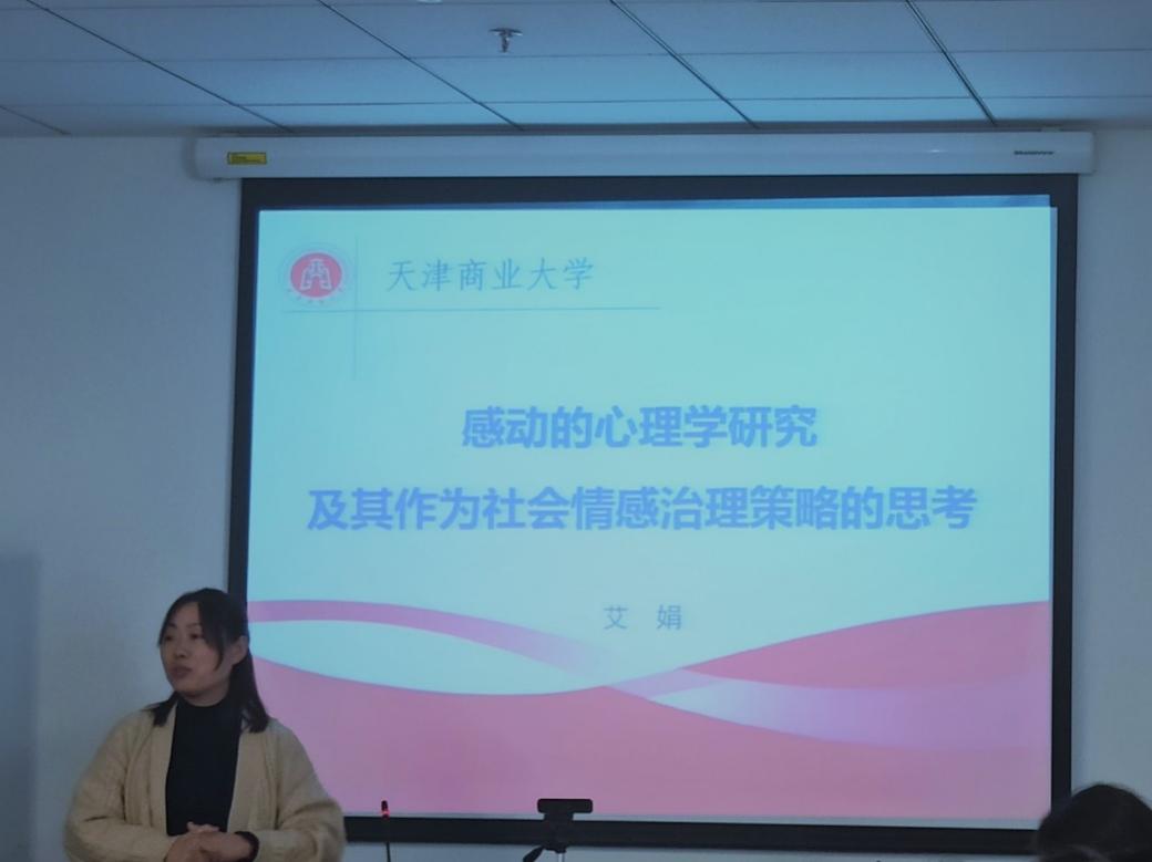 天津商业大学法公司艾娟副教授在“感动的心理学研究及其作为社会情感治理策略的思考”的主旨发言中,从艺术、文学、社会学、伦理学、传播学等不同学科视角出发,对“感动”这种特殊且复杂的情感状态进行了深入的思考,认为其可以作为一种社会情感治理的策略,可以进一步激发人们所共享的公共情感、更高水平的温暖感、促进社会正向情感的最大化、优化管理社会关系,助力良好社会心态建设。