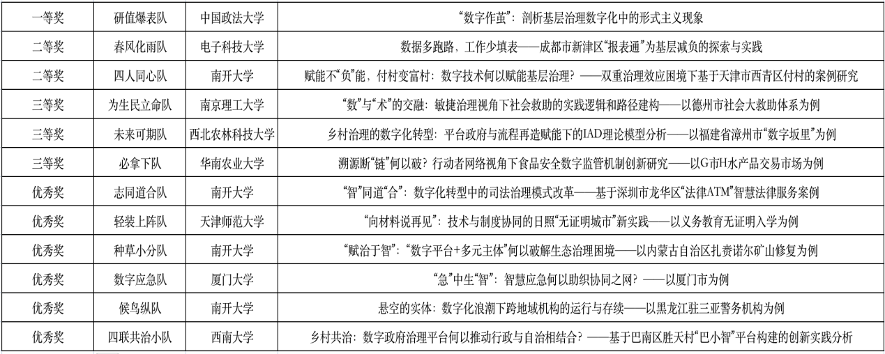 研究生赛道的12支队伍围绕“数字技术赋能公共服务”“社会治理数字化”“数字政府建设的层级协同和部门协同”等前沿和热点议题,展开生动陈述,并结合相关理论进行深入分析。在答辩环节各参赛队伍成员思维活跃、表达清晰,展现了积极自信、团结向上的精神面貌。