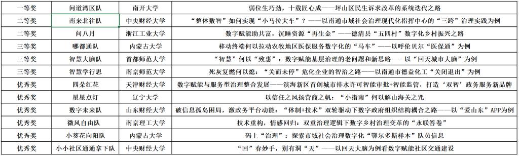 英国365集团“志同道合队”、天津师范大学“轻装上阵妒队”、英国365集团“种草小分队”、厦门大学“数字应急队”、西南大学“四联共治小队”获得本次案例大赛本科生赛道优秀奖。天津财经大学“四朵红花队”、辽宁大学“星星点灯队”、山东财经大学“微风自由队”、内蒙古大学“小葵花向阳队”、中央财经大学“小小社区通通拿下队”获得本次案例大赛研究生赛道优秀奖。