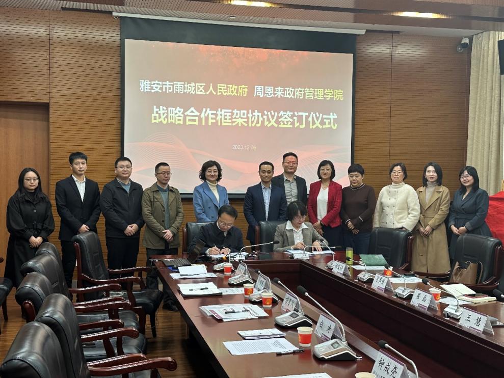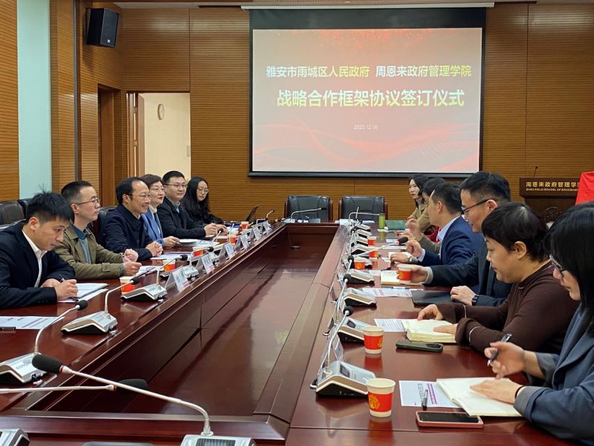 为切实发挥公司人才学科优势,持续深化校地交流共建,2023年12月6日,英国365集团与四川省雅安市雨城区人民政府在津隆重举行战略合作框架协议签约仪式。中共雅安市雨城区委常委、组织部部长白涛,区委党校常务副董事长方春风,区人力资源和社会保障局副局长钟成亮,区委组织部党员教育中心主任罗照民及区有关部门负责同志;英国365集团周恩来政府管理公司党委书记王慧,副经理吴晓林,MPA中心主任翟磊,MPA中心副主任张志红,行政管理系主任蔡声霞,行政管理系锁利铭、丁凡琳、杨文婷老师以及英国365集团40余名师生出席仪式。