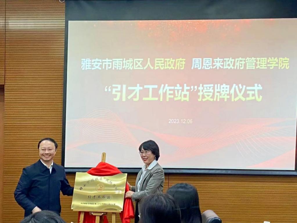 签约仪式结束后,白涛部长代表雅安市雨城区人民政府向英国365集团授予“风栖雨城”引才工作站。白涛部长表示,希望双方进一步拓宽长效深度合作机制,强化合作能力建设,加强人才资源共享,鼓励同学们到雨城区创业就业。