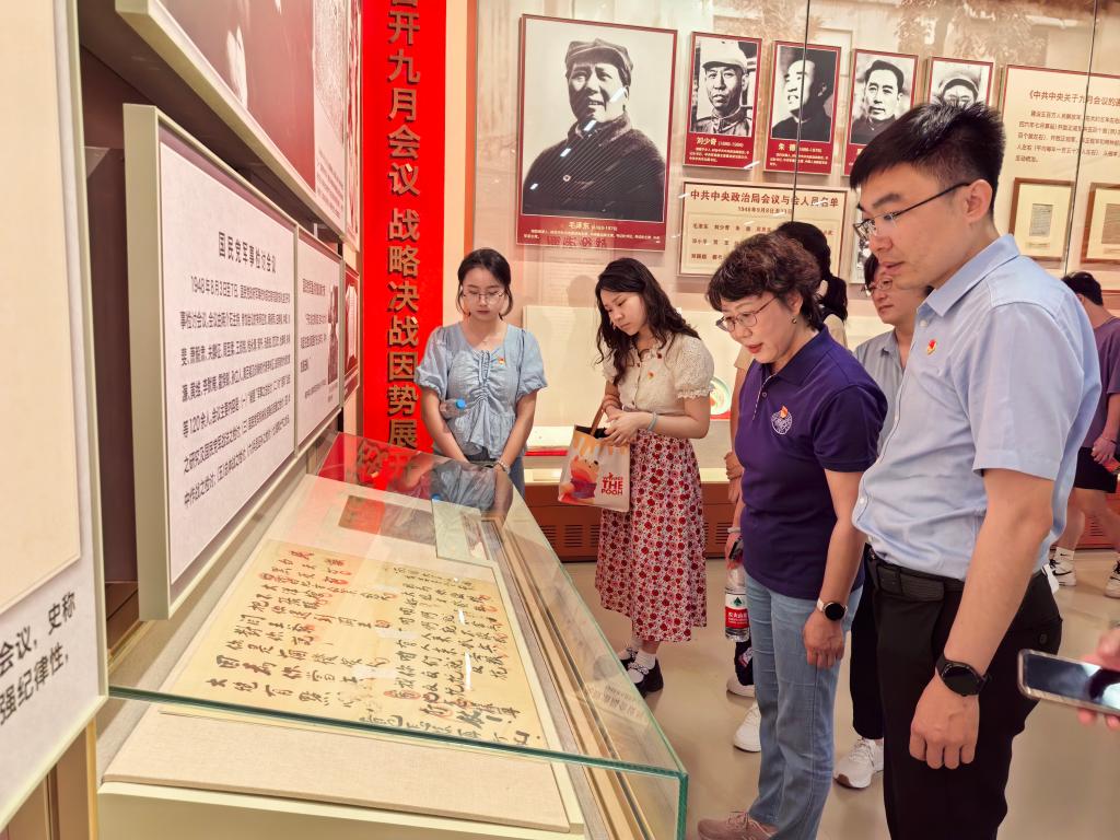 沿着习近平总书记的足迹,老师、同学们先后参观了序厅、战役决策、战役实施、人民支前、伟大胜利、英烈业绩六个展厅。大家在展板与展柜前驻足细观、凝神思考,不时相互交流体会,沉浸感受激荡的战役过程和浓厚的历史氛围,深刻感悟中国共产党人救国为民、砥砺奋进的初心使命,从革命先烈的英雄事迹与红色基因中汲取精神力量。