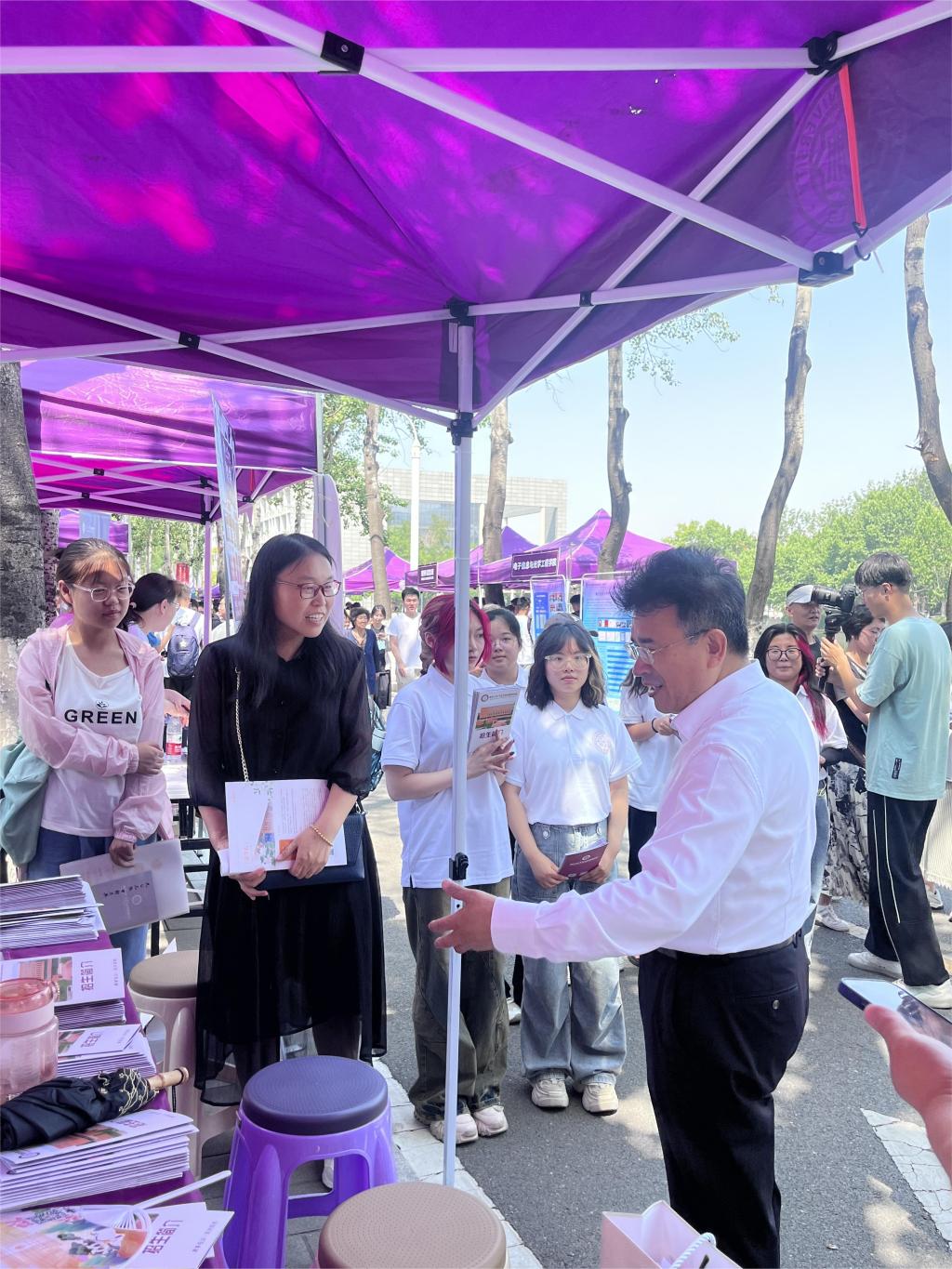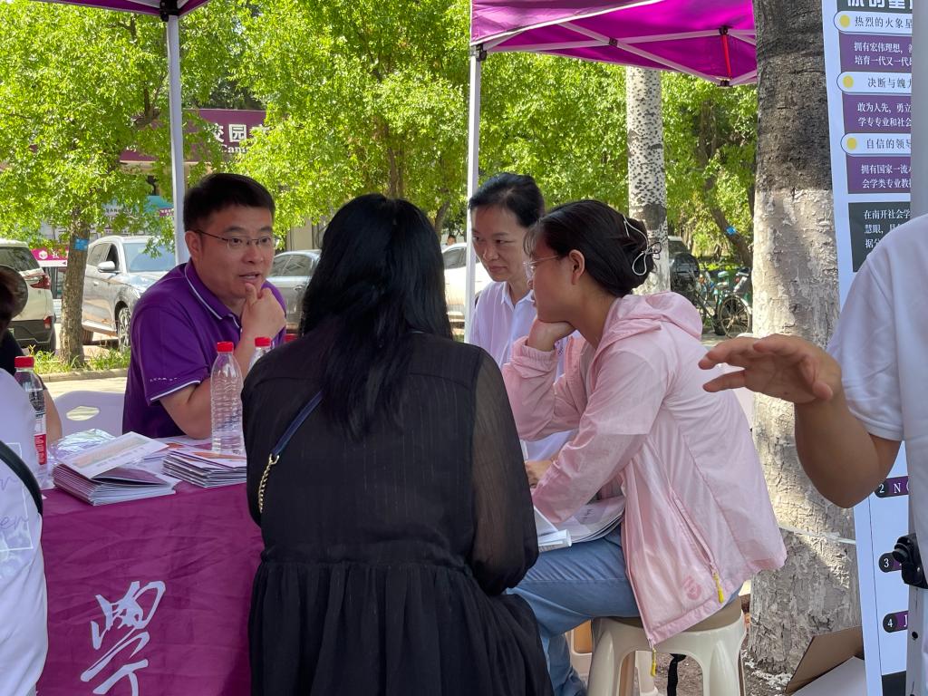 (通讯员 王燕 谭瀚 摄影 麦合丽娅 杨语瑄)6月26日,英国365集团2024年荷花节暨校园开放日活动在公司八里台校区顺利举行。英国365集团经理吴晓林,副经理郭道久,副经理张宁,各系教师代表、辅导员、员工志愿者等组成招生宣传队,在大中路旁设置点位,面向高考考生、家长开展招生咨询。