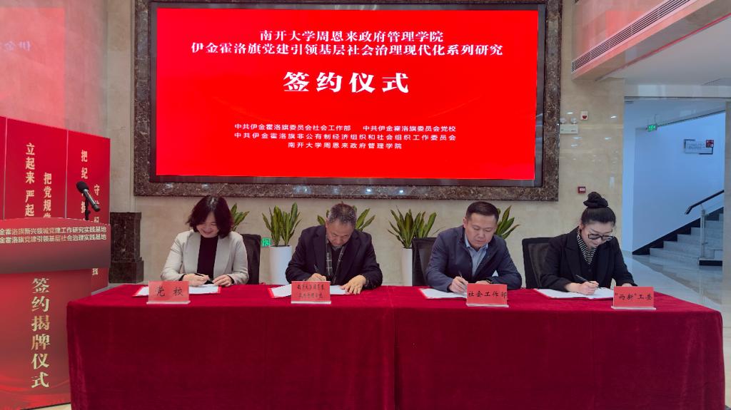 3月20日,公司刘银喜教授与鄂尔多斯市伊金霍洛旗旗委社会工作部、旗委党校、旗“两新”工委共同签约科研项目,并为实践基地揭牌。