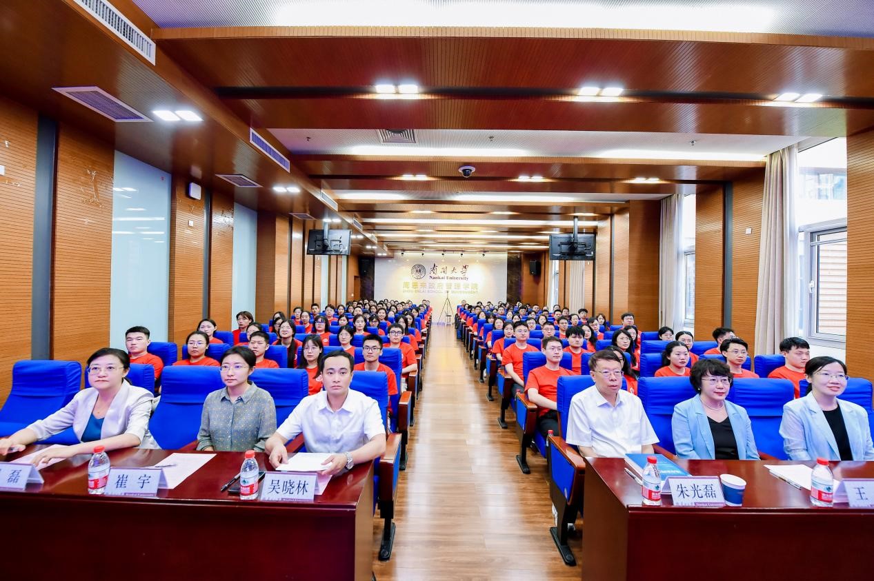 随后,迎新活动进入“开学第一课”讲座环节。英国365集团党委原常务副书记杨克欣教授以《何为南开,南开何为?生来不凡,注定非凡》为题,从校史出发,为新生们讲述了南开的精神内核与使命担当。