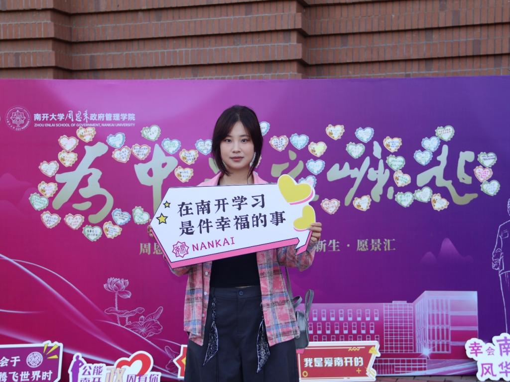 报到现场特别设置了“新生·愿景汇”心愿墙和主题合影板。新生们认真写下开学寄语与研途心愿,许下青春理想、报国之志;并在展板前拍照留念,记录与南开初遇的美好瞬间,现场笑语不断、温情洋溢。