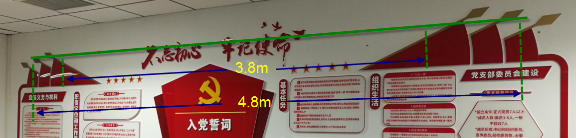 1.左侧前半部,建议长度:5米。透明胶带粘贴,会议结束立即清除胶带。