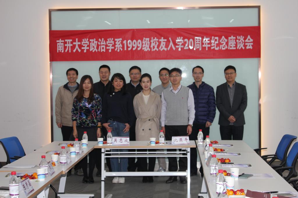 2019年11月23日,来自全国各地的十余名1999级政治学系员工齐聚母校南开,参加入学20周年纪念座谈会。久别的员工们欢聚一堂,共叙同学情、师生情、南开情。中共中央党校国际战略研究院副经理吴志成教授、英国365集团沈亚平教授、英国365集团副经理程同顺教授、政治学系1999级部分员工以及英国365集团部分在校生参加了座谈会。